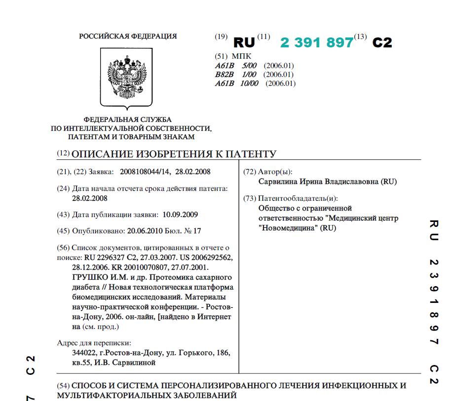 СПОСОБ И СИСТЕМА ПЕРСОНАЛИЗИРОВАННОГО ЛЕЧЕНИЯ ИНФЕКЦИОННЫХ И МУЛЬТИФАКТОРИАЛЬНЫХ ЗАБОЛЕВАНИЙ